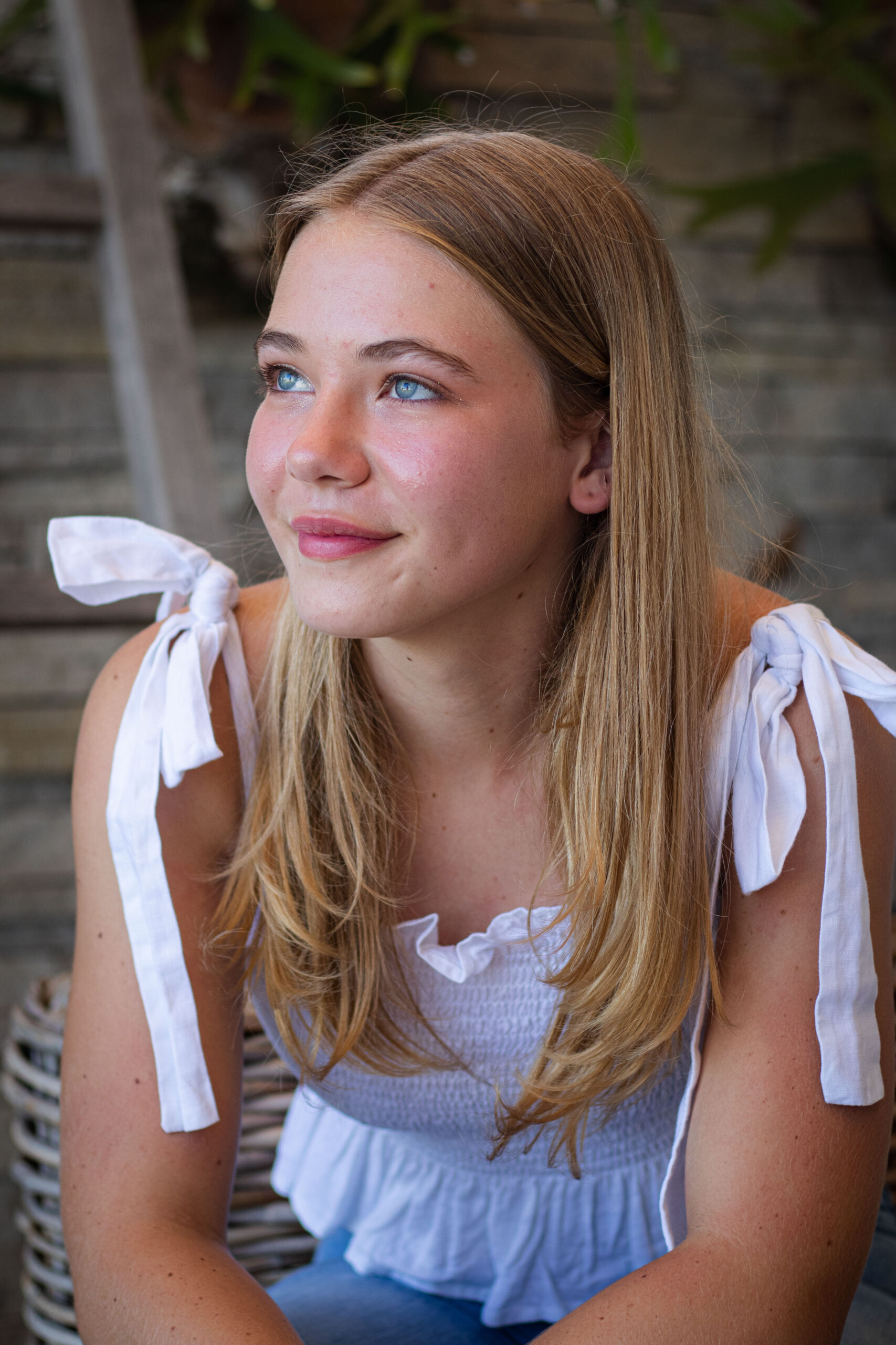 Jaime brings her surroundings to life with her poses and joyful atmosphere.